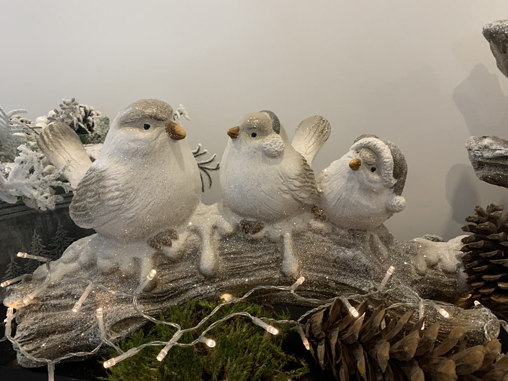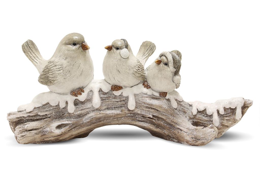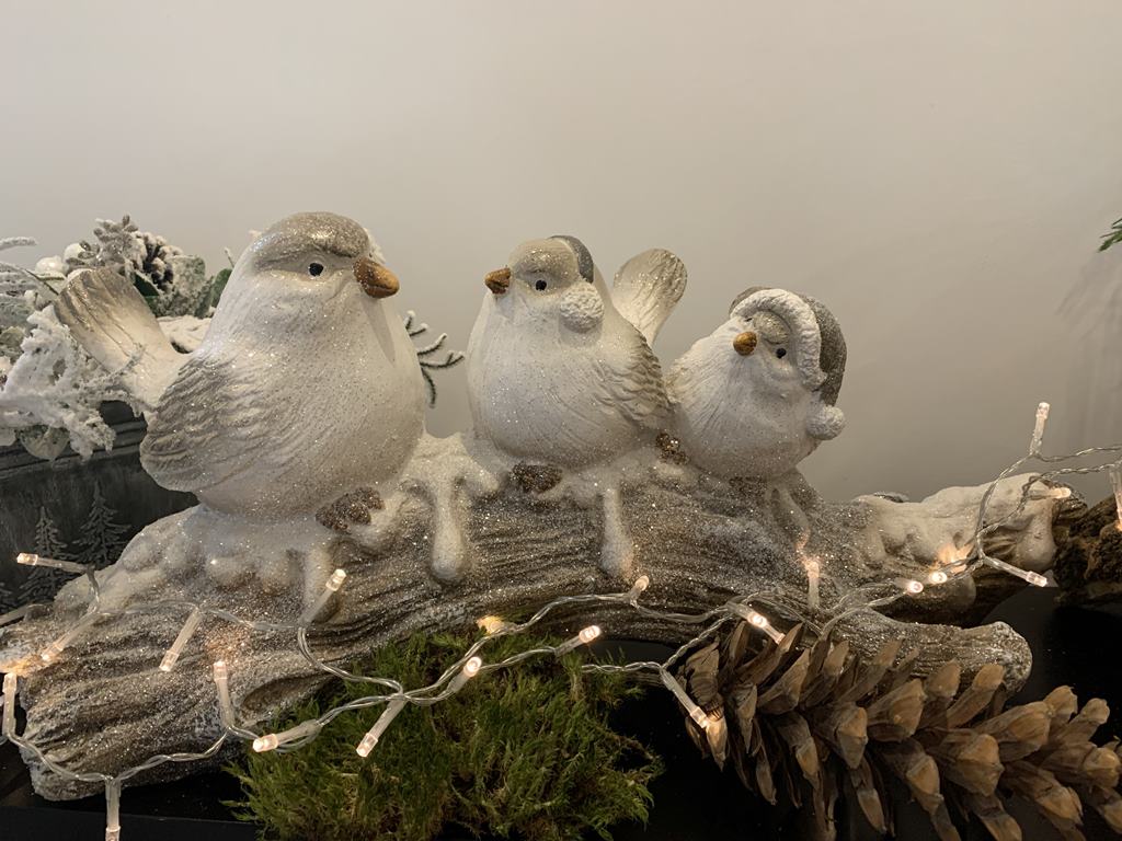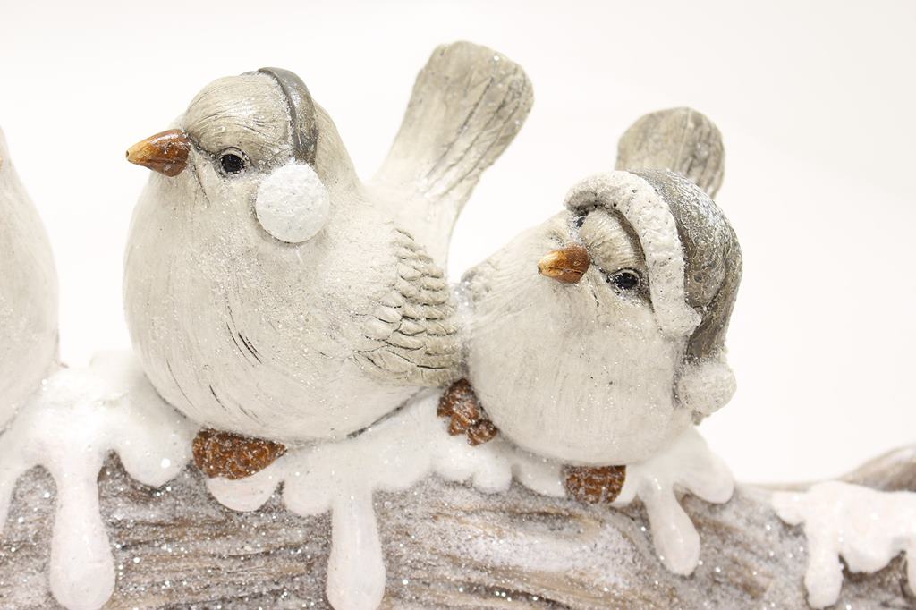 Veľka, zimná kompozícia vtáčej rodinky na konáriku, určite ozvláštni Vašu vianočnú výzdobu.