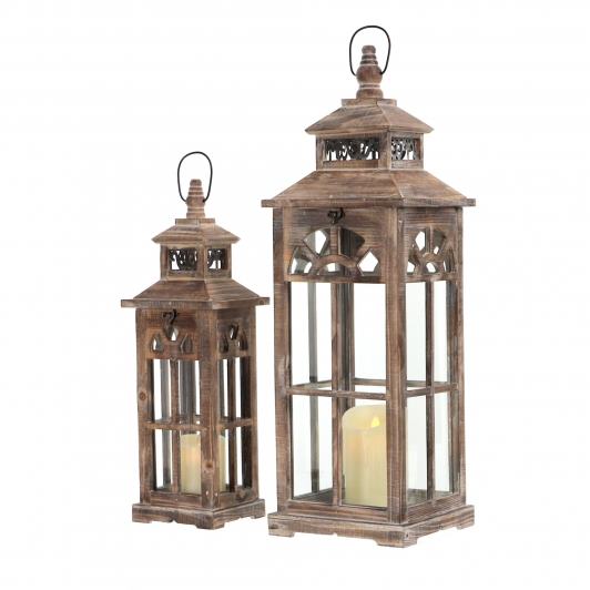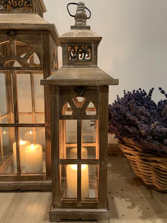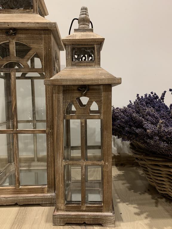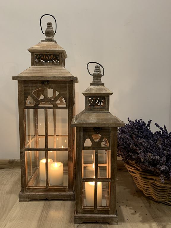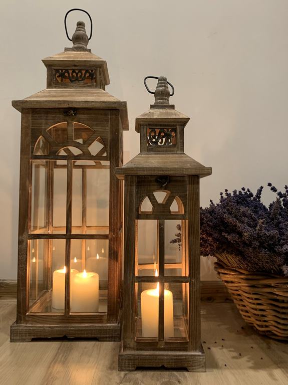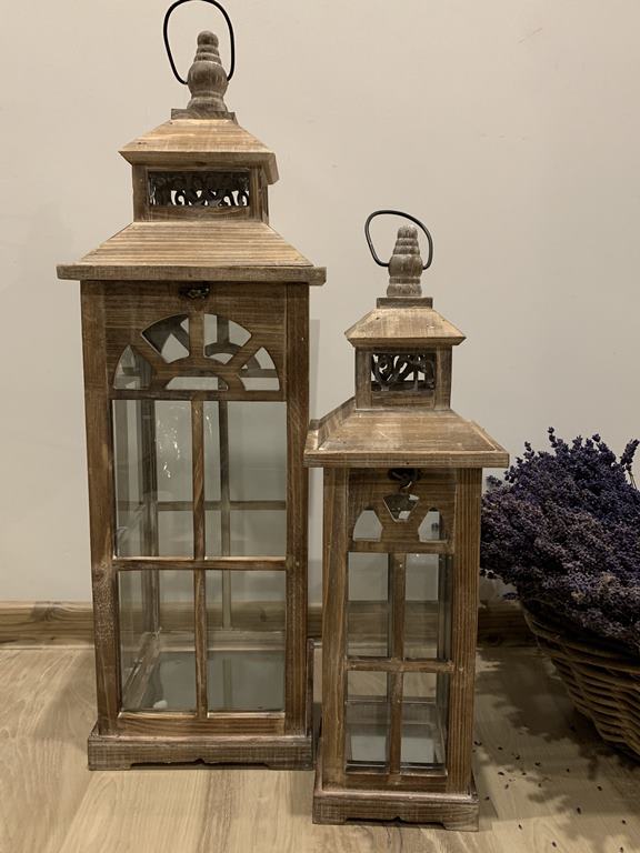 Sada dvoch drevených lampášov s hnedom prevedení