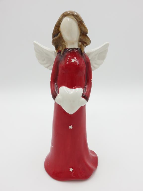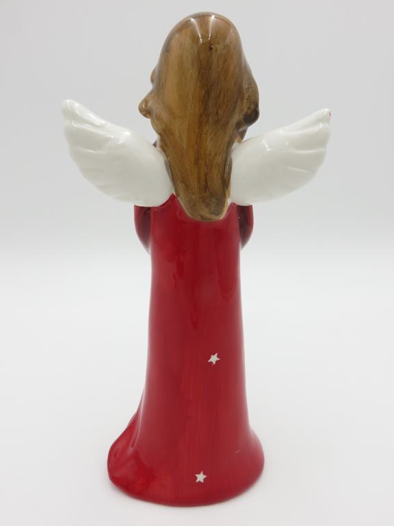 Rozkošná keramická figúrka červeného anjelika, skvelá dekorácia na sviatočné obdobie