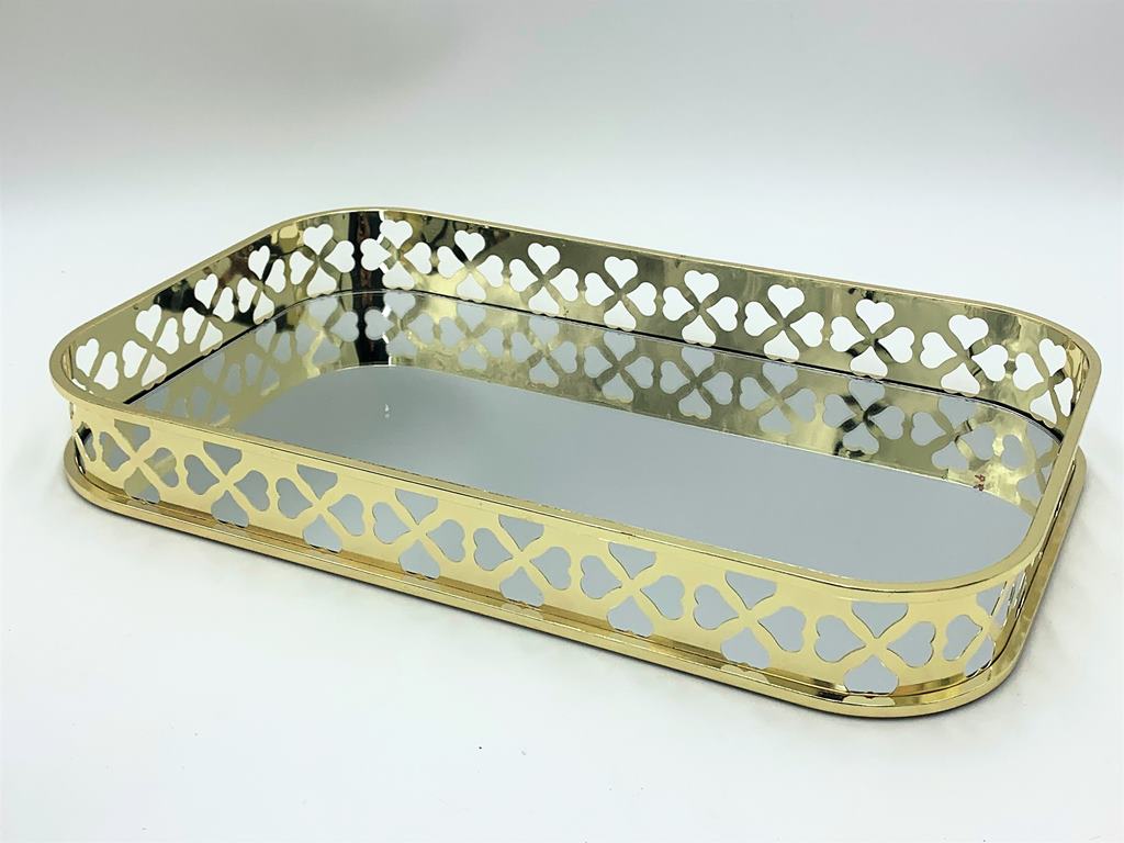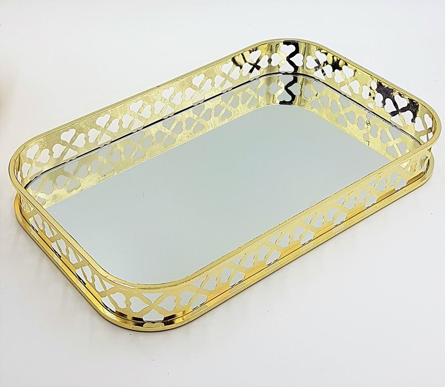 Zlatý, zrkadlový podnos s dekoračnou obrubou