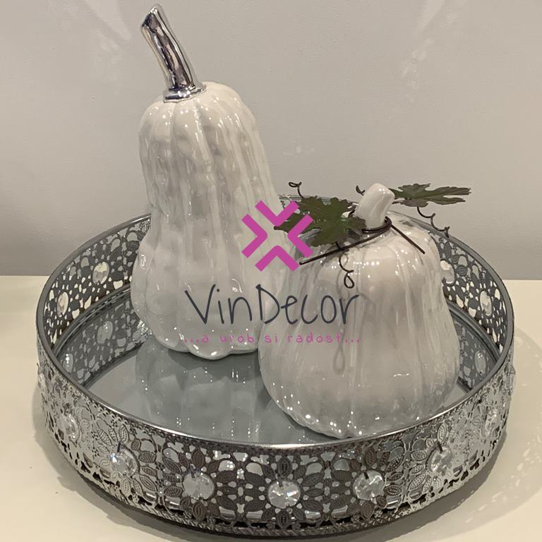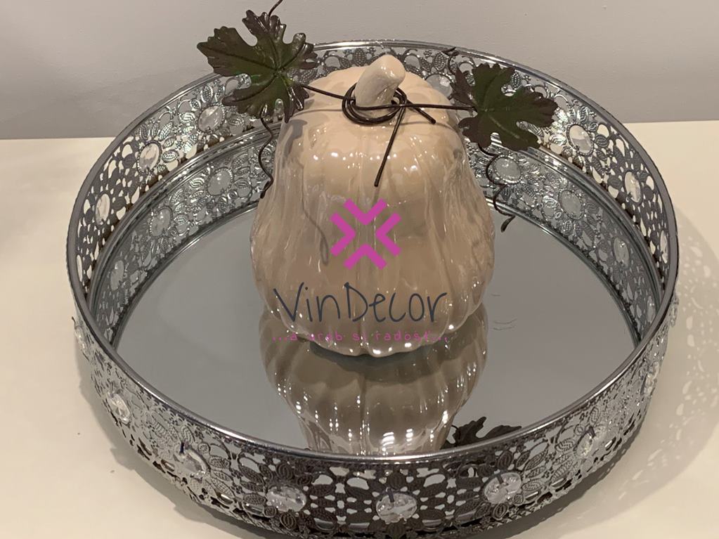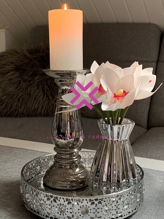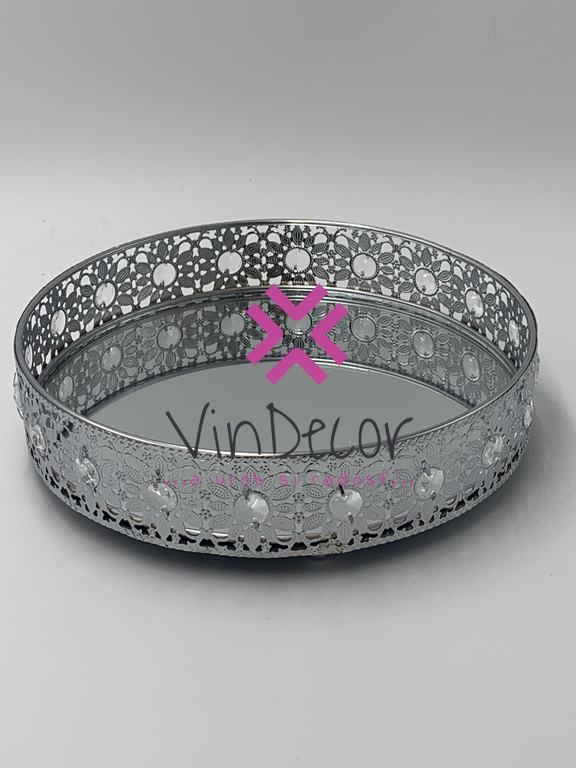 Strieborný podnos s kvietkovaným vzorom, zdobený kamienkami